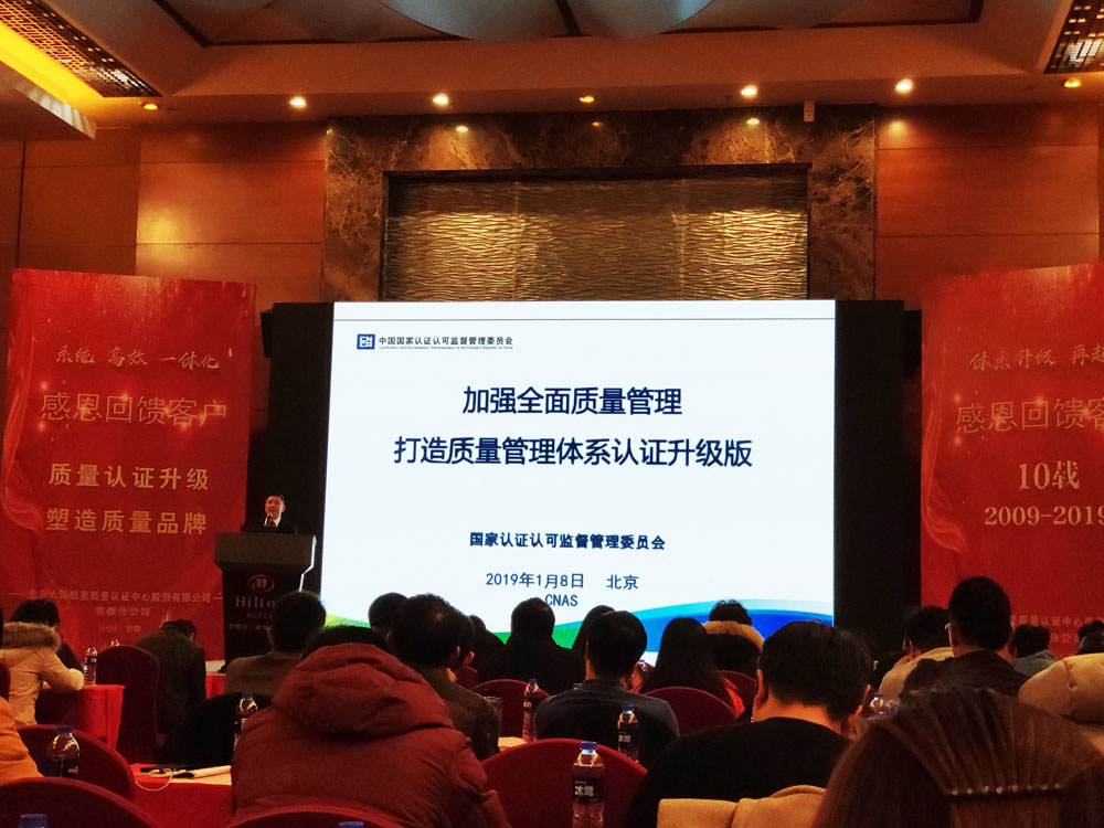 為全面貫徹落實《中共中央國務(wù)院關(guān)于開展質(zhì)量提升行動的指導(dǎo)意見》(2017 年9 月5 日)、《國務(wù)院關(guān)于加強(qiáng)質(zhì)量認(rèn)證體系建設(shè)促進(jìn)全面質(zhì)量管理的意見》(國發(fā)〔2018〕3 號)以及認(rèn)監(jiān)委《關(guān)于質(zhì)量管理體系認(rèn)證升級版的實施意見》(國認(rèn)可〔2017〕137 號)等系列文件要求,北京大陸航星質(zhì)量認(rèn)證中心股份有限公司(以下簡稱HXQC)將于2019 年3 月2 日在安徽合肥舉辦“質(zhì)量管理體系分級認(rèn)證事項培訓(xùn)”,長達(dá)力敏作為ISO9001質(zhì)量管理體系獲證企業(yè)參加了3月2日于合肥舉行的質(zhì)量管理體系認(rèn)證升級的培訓(xùn)。